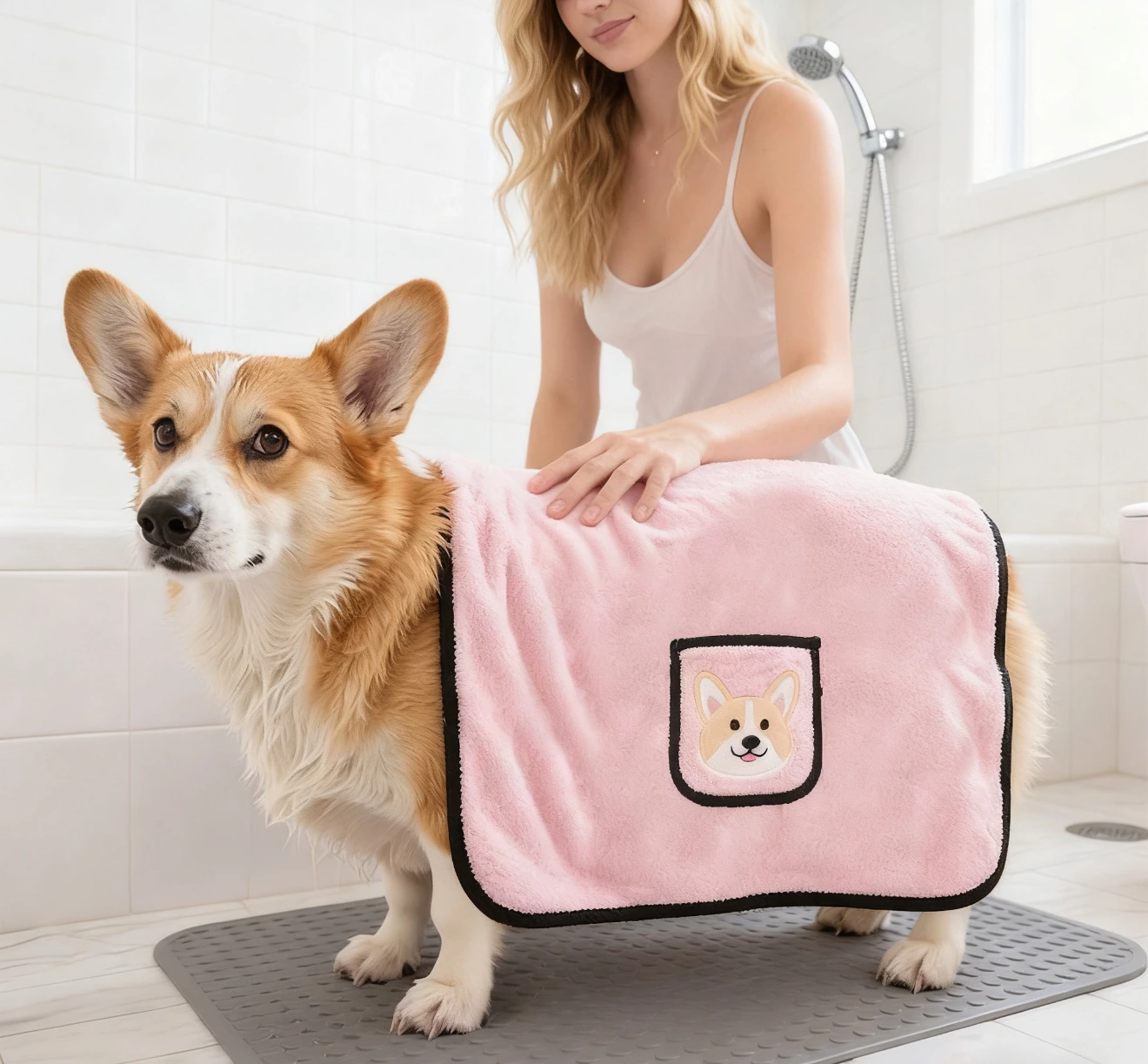 Wholesale Custom Logo Double Layers Ultra Soft Quick Drying Microfiber Waffle With Bag Adjustable Dog Pet Towel