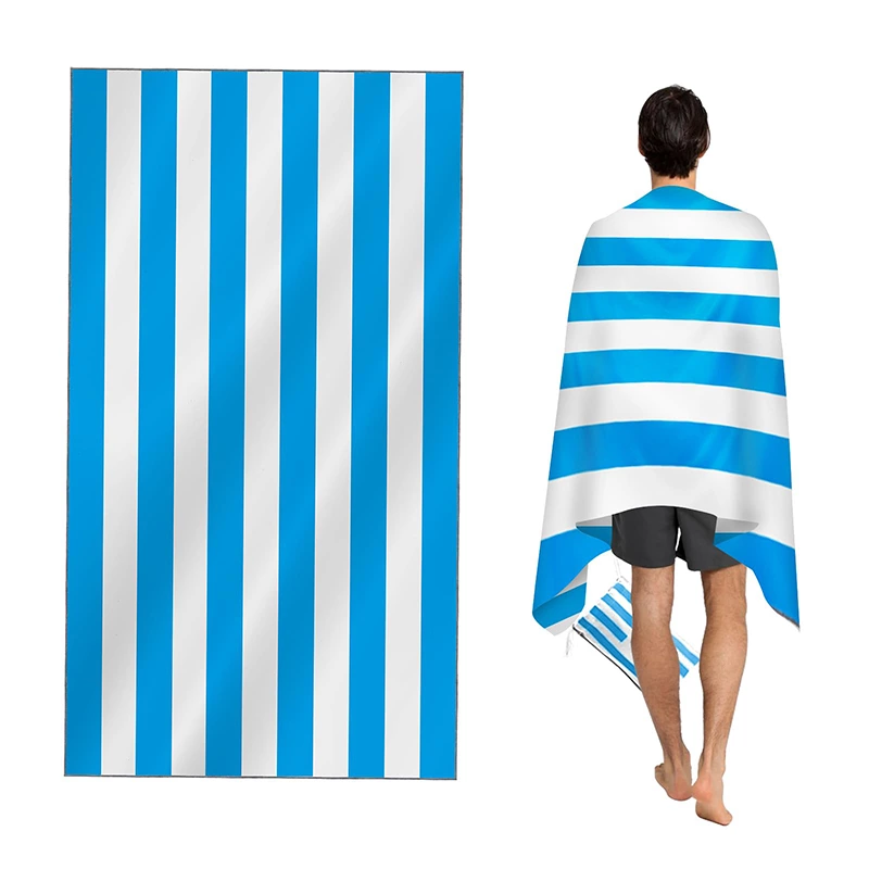 Blue White Striped Pattern Quick Dry Beach Towel Summer Travel Towels with Free Sand Hand Face Towel with Bag Stripe Design