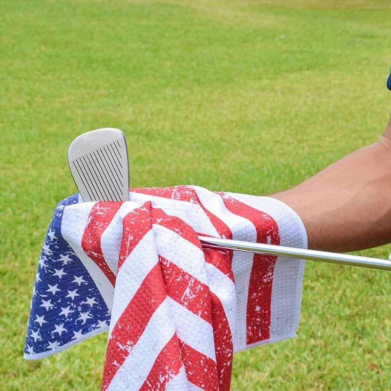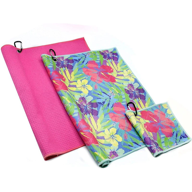 High Quality Printed Waffle Towels Custom Microfiber Woven Golf Towel With Hook for Golf