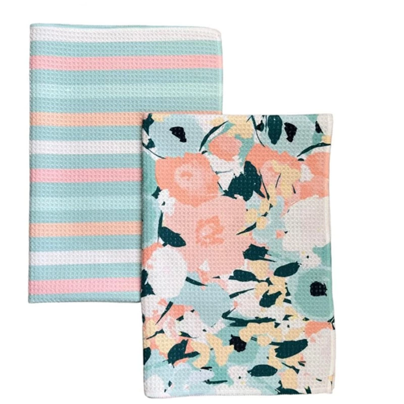 Custom Printed Waffle Weave Microfiber Kitchen Dish Towel Quick Dry Soft Absorbent Tea Towel