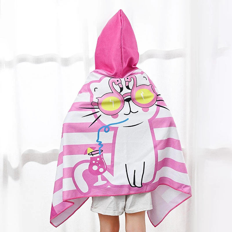 Wholesale Microfiber Custom Printed Children Kids Surf Wearable Poncho Towels Hooded Beach Bath Towel